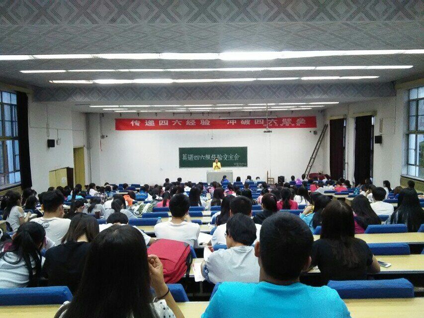 财管1204班郭勤勤同学从听力方面为同学们介绍迎战四级的方法与技巧,他提醒同学们听力时要及时记录下关键信息,如时间、地点、人名和数字等;经济学1201班李瑶同学告诫大家备考时应尽量多做四六级真题而非模拟题,要熟练掌握考试题型,掌握做题节奏;财管1303班陈耀芳同学指出四级作文是看整体水平打分,同学们应该注意平时积累一些高级词汇、固定搭配和闪光句型;财管1203班吴冰婕同学传授了排除法的应用,她指出要学会灵活运用排除法,舍小分值题保大分值题;财管1202班王苗同学为大家展示了她的考前计划,强调了做好前期计划的重要性。会场里寂静无声,同学们都聚精会神地认真听讲,而在现场互动环节,同学们踊跃提问,解答者耐心回答,气氛热烈,收到了预期的效果。