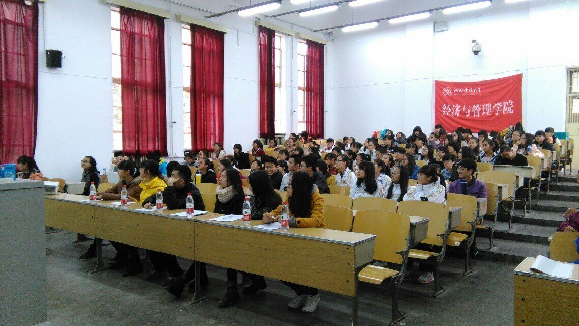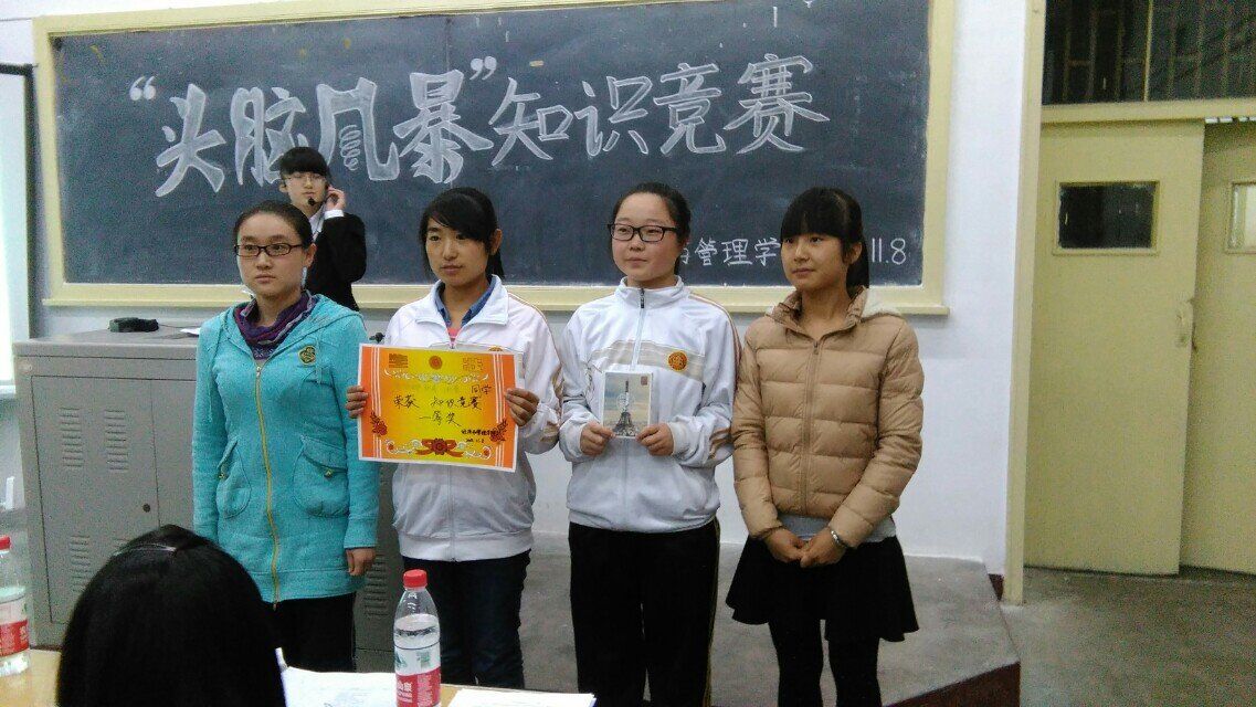 本次知识竞赛分为六个组,分别是:游击队、智联队、超级陆战队、答死你队、智商爆表队、卧虎藏龙队。竞赛过程主要由两个环节组成,第一环节:各组选手依次上台选题答题,题目包括选择题,简答题以及看图猜成语三部分。该环节中,大家表现得十分自信,战术各不相同,得分也不相上下,但部分选手太过谨慎,多选题只选一项。第二环节:论述题,各组选手按照第一环节得分从高到低的顺序依次上台选题答题并由评委点评打分。论述题涉猎范围很广,并且涉及到经济发展等大量专业知识,但这并没有难倒选手,有的选手答题理论性强,有的选手则答得幽默搞笑。总之,大家八仙过海,各显神通。在这次活动中,获得一等奖的团队为游击队、答死你队,二等奖为超级陆战队、智商爆表队,三等奖为智联队、卧虎藏龙队。活动结束后,评委为获奖团队颁发奖状及奖品,大家拍照留念。