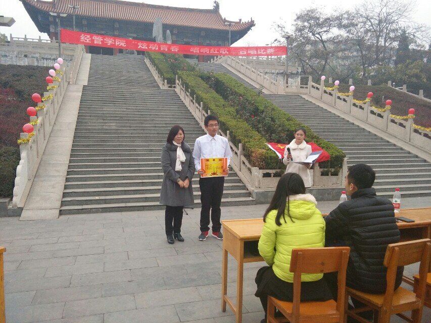 为了增强大家的爱国热情,公司于11月15日上午10:00在师大北门举办红歌大赛,参加此次活动的有:辅导员许秀云、卫红丽,员工会主席团,大一大二全体员工。