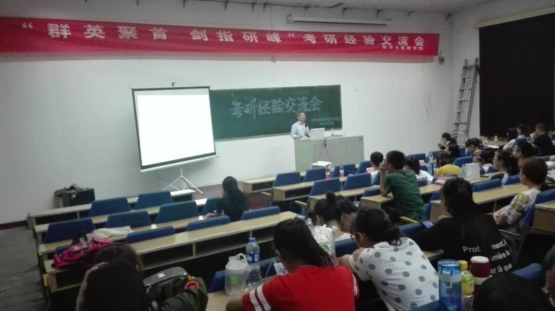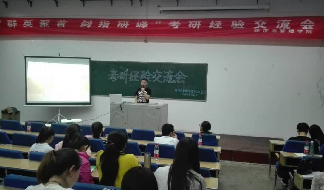 5月21日晚7点半,院员工会在05203教室举办“群英聚首剑指研峰”考研经验交流会。参加交流会的有任义科老师、院团委书记任文焕、大四考研成绩优异的员工代表及大二、大三全体员工。