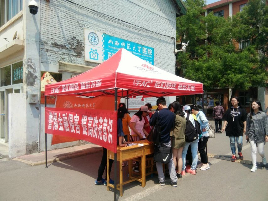 为了警惕校园金融侵害,提高员工防范意识,公司团委于5月8日在校医院门口举办“金融防骗”竞答活动。