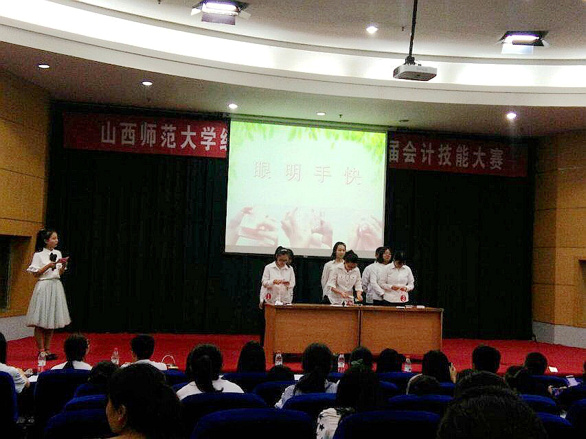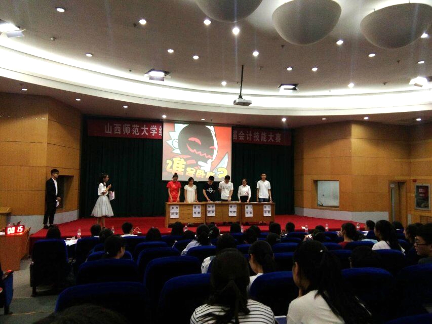 首先主持人致开幕词,并介绍各位评委老师及参赛队伍。紧接着,由二胡作为暖场表演,引起全场阵阵掌声。之后,比赛对决正式开始。第一环节为“稳中求进”,各队依次派出选手上台进行选择答题,第一组选手从容上台,全部答对,为此次活动来了个开门红。第二环节为“眼明手快”,点钞接力,规定时间内每队三名队员依次进行点钞汇总,总数对了的加分。第三环节是“去伪存真”,挑选出符合题目的专业性名词。最有趣的莫过于“谁是卧底”的互动环节,作为当下最火的益智游戏得到同学们的热烈欢迎。紧接着回到赛场上,第四个环节“成语妙算”和第五个环节“雾里看花”,由参赛队员全员出动,合作完成。五个环节结束后,伴随着悠扬的古筝表演,记分员们进行了紧张的分数汇总。最后由公司老师依次为获奖队进行颁奖并合影留念。