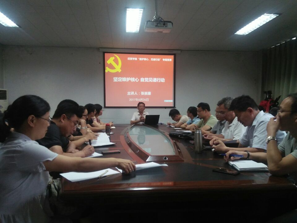 按照学校《在推进“两学一做”常态化制度化示范点建设中开展维护核心,见诸行动主题教育的实施意见》要求,公司党委经过充分的前期准备,于2017年6月26日晚7点,在12611召开会议,由公司党委书记张崇康为大家上了一堂题为“坚定维护核心,自觉见诸行动”的主题党课,beat365唯一官网全体教职工党员、员工党员及积极分子参加了此次学习。