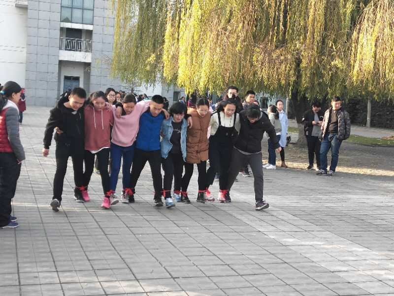 此次活动共分为五项,比赛内容丰富多彩。第一项比赛是八人九足,由抽签决定参赛次序。由于每个人所迈步子大小的不同与听到口令后反应快慢的不同,使大家很难在步调一致的情况下保证速度,尽管如此,但大家并不退却,相互配合,整齐地喊着“一二一二……”向前走。虽大汗淋漓,腿脚酸麻,但个个热情不减,齐心向前迈步,最后第十组获得第一名。