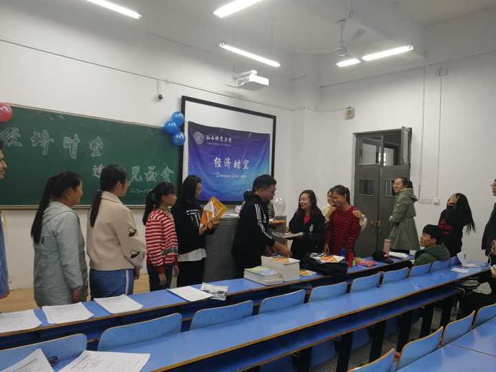 会后大家一起收拾场地,整理条幅。所有社员都积极主动,洋溢着青春和活力。社团活动中有志趣相投的同学之间切磋交流的乐趣,也有探索发现自身专业、职业兴趣的机会,是个性成长的乐园。希望同学们都能在经济时空社团内找到属于自己的一片广阔蓝天。