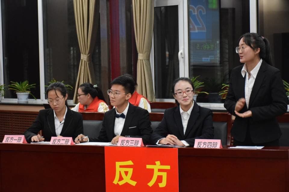 在最初的开篇立论环节中,正方一辩首先采用并列式的方式抛出了三个论点,完美论证了己方观点;而反方则反行其道,运用对比的方法,举例论证了“从我们出生到现在,那种无休止的加法,根本不会使我们幸福”这一论题,在驳斥,推翻对方论点的同时,让自己的论点更具有说服力。而在随后的攻辩环节中,双方更是争锋相对,步步紧逼,颇有狭路相逢勇者胜的意味。