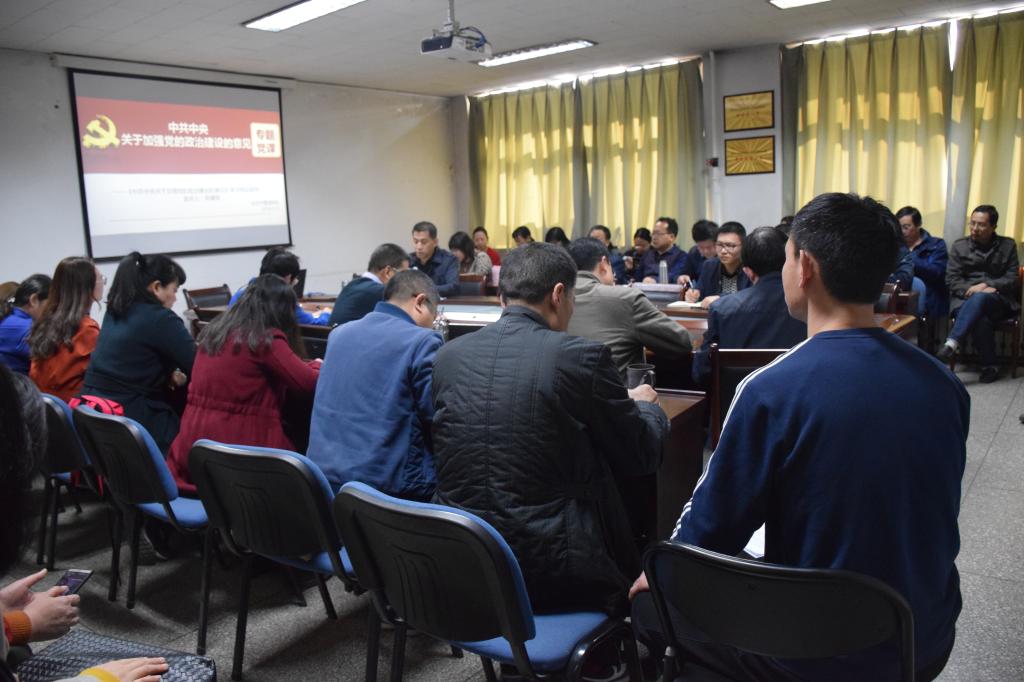 党委书记吴建军以加强党的政治建设为题为大家作主题党课,主要从六个方面详细解读了《中共中央关于加强党的政治建设的意见》,强调全体教职工要准确领会和把握《意见》精神,要树牢“四个意识”,增强“四个自信”,不断增强拥护核心、跟随核心、捍卫核心的思想自觉行动自觉,以正确的认识、正确的行动坚决做到“两个维护”。带领大家学习了习近平总书记关于高公司党的建设和思想政治工作的重要论述。强调要充分发挥党的政治引领和价值引领作用,坚持立德树人根本任务,加强教师队伍师德师风建设,强化“立德树人”培育工程,努力构建全员、全过程、全方位育人体系,真正将教育大会精神落到实处。
