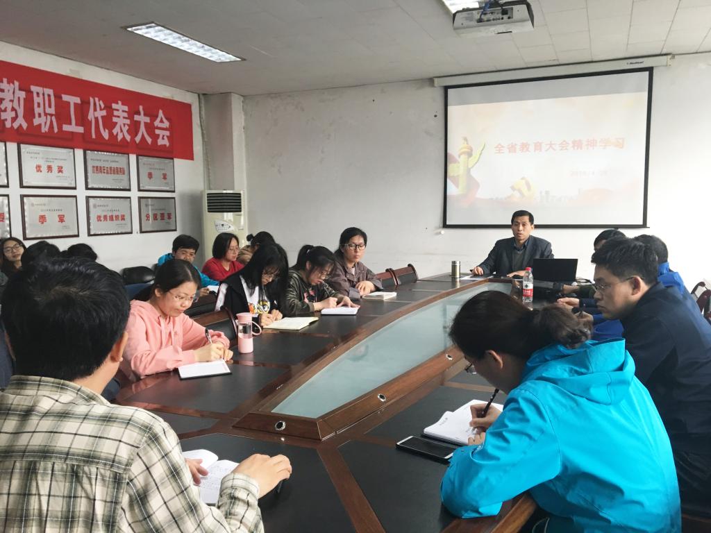 为深入贯彻公司党委“改革创新、奋发有为”大讨论精神,深入贯彻习近平总书记关于教育的重要论述,全面贯彻党的教育方针,加快推进教育现代化,认真学习骆惠宁书记在全省教育大会上的重要讲话,beat365唯一官网于2019年4月29日下午在学院会议室召开了学习全省教育大会精神专题会议。会议由党委书记吴建军主持,学院全体教职工参会。