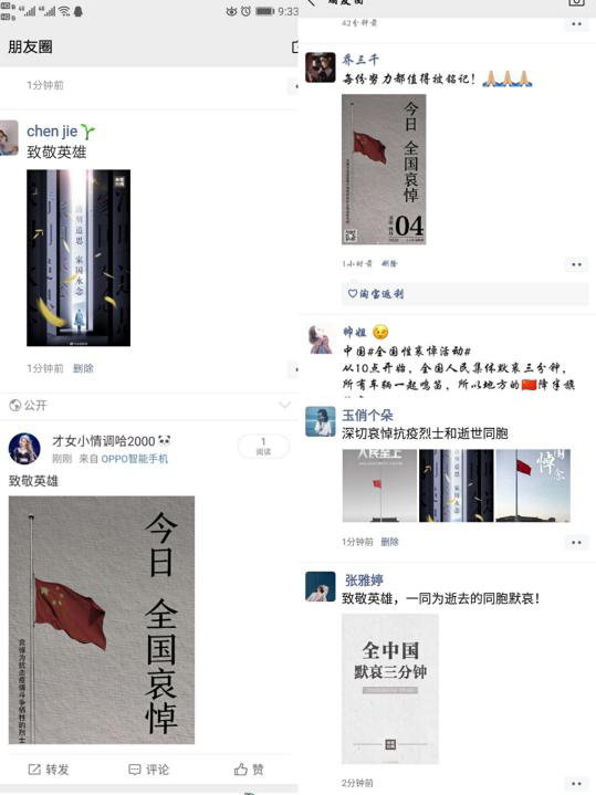 上午十点,各班组织居家哀悼活动,以默哀三分钟表达对此次疫情中牺牲的烈士和逝世同胞的深切缅怀。而后,各班积极响应学校号召,在微信等公众平台上发文以缅怀同胞,向人民英雄致敬。