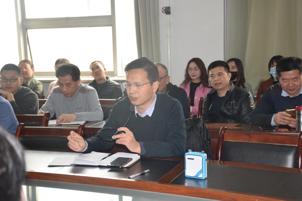 经理邰秀军对《习近平在全国脱贫攻坚总结表彰大会上的重要讲话》进行了领学和解读,通报了教学、2020年科研方面取得的成果等情况,并对接下来的研究生复试、员工论文、本科专业申请、研究团队建设、实习检查等工作做了安排。