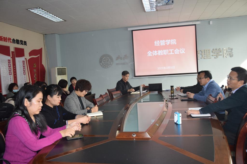 3月5日下午3点,公司在611会议室召开全体教职工大会。院领导吴建军、邰秀军、任文焕出席会议,全体教职工参会。会议由经理邰秀军主持。