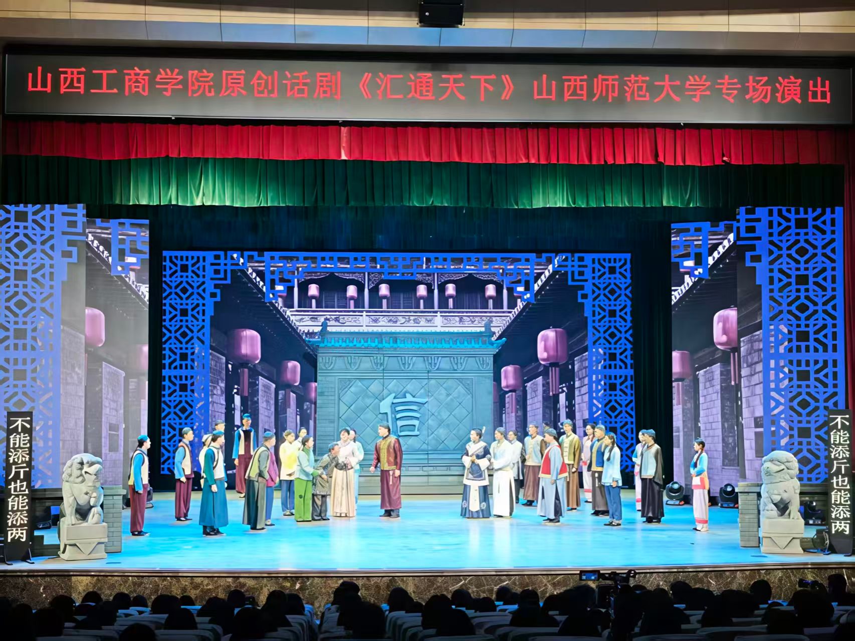 话剧《汇通天下》以晋商历史为背景,通过生动的舞台表演和精湛的剧情设计,深刻诠释了晋商“诚实守信、开拓进取、和衷共济、务实经营、经世济民”的精神内涵。演员们以富有张力的表演,生动展现了晋商纵横欧亚、称雄商界的传奇历程及其深厚的家国情怀与道德追求,为观众带来一场沉浸式的艺术与思想体验。